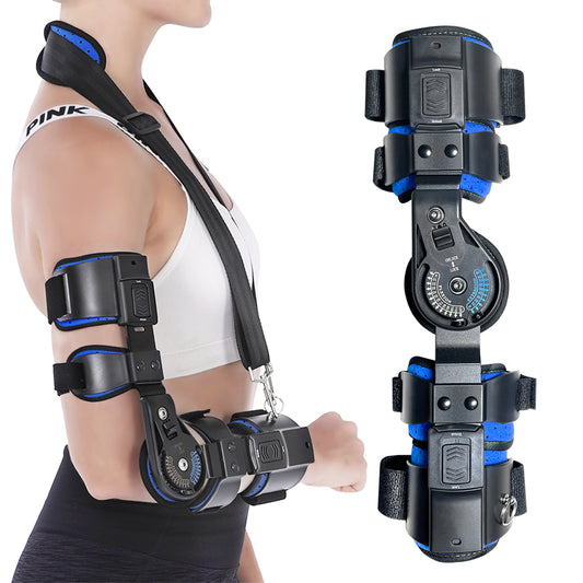 Hinged Elbow Brace, ROM Adjustable Splint Stabilizer Arm Splint Supporting Elbow Extension Guard Shoulder Strap Recovery After Surgery Arm Injury